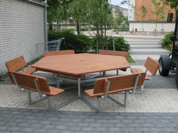 Bänkbord sextett passar perfekt som samlingspunkt på lekplatser, i parker, stadsrum och på skolgårdar. Den generösa, sexkantiga formen främjar samtal och gemenskap, vilket gör det enkelt att mötas och umgås i större eller mindre grupper.