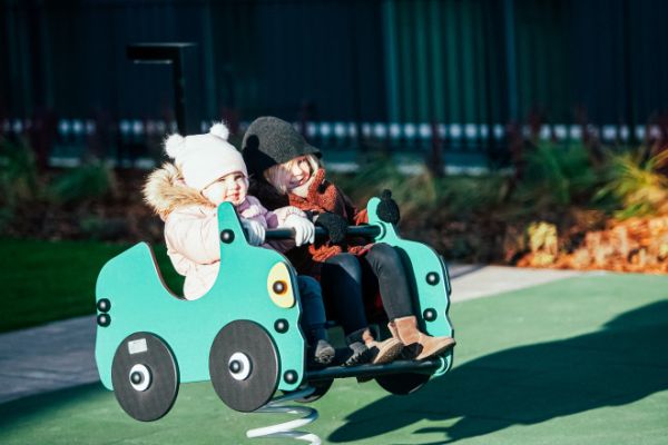 Bil Dubbel passar perfekt in på offentliga lekplatser, förskolor och bostadsområden där trygg och stimulerande lek prioriteras. Den dubbla sitsen uppmuntrar till gemensam lek, vilket stärker barnens sociala samspel och motoriska utveckling samtidigt som den erbjuder timmar av glädje och rörelse.