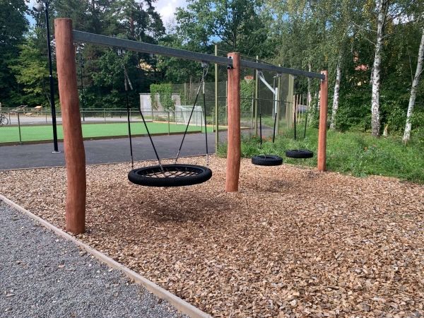 Den här gungställningen passar utmärkt på lekplatser, i skolor, parker och bostadsområden där man vill erbjuda barn en aktiv och social utemiljö. Den naturliga designen smälter harmoniskt in i gröna omgivningar och bidrar till att skapa inbjudande och attraktiva lekytor.
