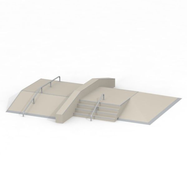 Denna funbox är tillverkad av galvaniserat stål och betong, vilket säkerställer en robust och långlivad konstruktion. Materialvalet gör att anläggningen står emot intensiv användning och tuffa väderförhållanden, samtidigt som det ger ett professionellt intryck och utmärkta åkegenskaper.