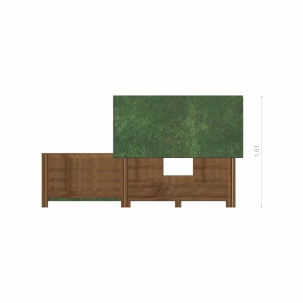Detta lekhus är tillverkat av lärkträ och konstgräs, vilket ger en naturlig och hållbar känsla som smälter in i omgivningen. Lärkträ är känt för sin styrka och motståndskraft mot väderpåverkan, medan konstgräset på tak och veranda ger en mjuk, behaglig yta och ett lekfullt utseende.