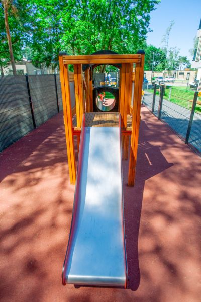 Locomotive w/ Tower and Slide bjuder in barn till fantasifulla resor och spännande upptäckter på lekplatsen. Den unika designen, inspirerad av ett klassiskt lokomotiv med tillhörande torn och rutschkana, lockar till lek och rörelseglädje i en trygg miljö.