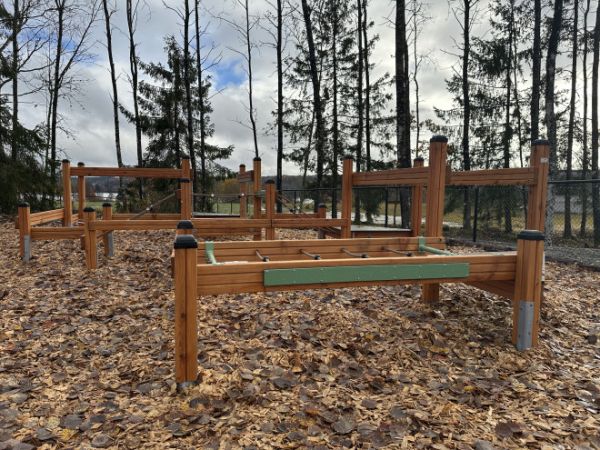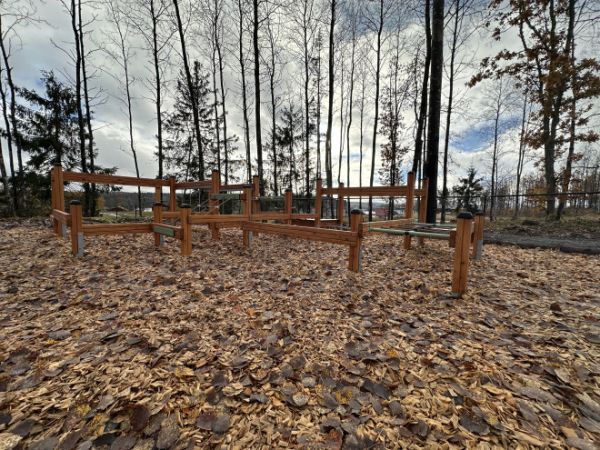 Denna motorikbana är tillverkad av lärkträ, återvunnen HDPE, polypropenrep med stålkärna, halkskyddad vattentålig plywood, rostfri stålkedja, PP och PE. Kombinationen av dessa material garanterar långvarig hållbarhet och motståndskraft mot väderpåverkan, samtidigt som varje detalj är noggrant utformad för att ge både stabilitet och ett tilltalande utseende. Varje komponent bidrar till en miljövänlig och robust konstruktion som står emot intensiv användning året runt.