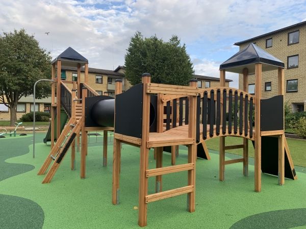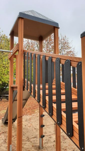 Oden är perfekt för offentliga parker, skolor, bostadsområden och andra platser där barn samlas för att leka. Den inspirerande designen bjuder in till rörelse, samarbete och fantasilek, samtidigt som den naturliga träkänslan ger ett varmt och inbjudande intryck i miljön.
