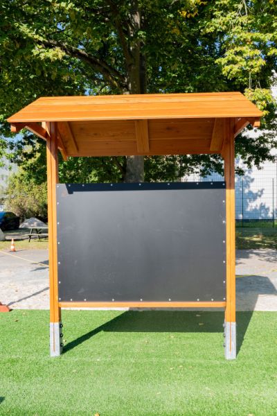 Det här skyddet med integrerad griffeltavla är ett utmärkt tillskott till lekplatser, skolor, parker eller fritidsområden. Det erbjuder en väderskyddad plats för picknick, samlingar, undervisning eller kreativa aktiviteter och uppmuntrar till både samarbete och lek i det fria.