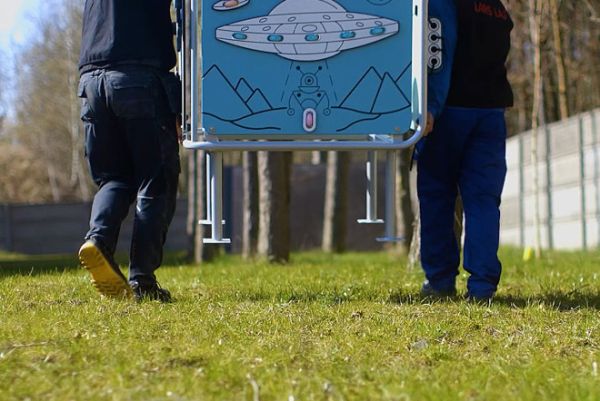 Fabriqué en acier thermolaqué, avec des cordes souples en polypropylène, des éléments en HDPE et du nylon, ce jeu allie robustesse et sécurité. Ces matériaux de haute qualité garantissent une durabilité exceptionnelle tout en étant agréables au toucher pour les enfants.