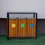Wooden recycling bin est une poubelle de tri conçue pour faciliter la gestion des déchets tout en apportant une touche esthétique à l’espace extérieur.